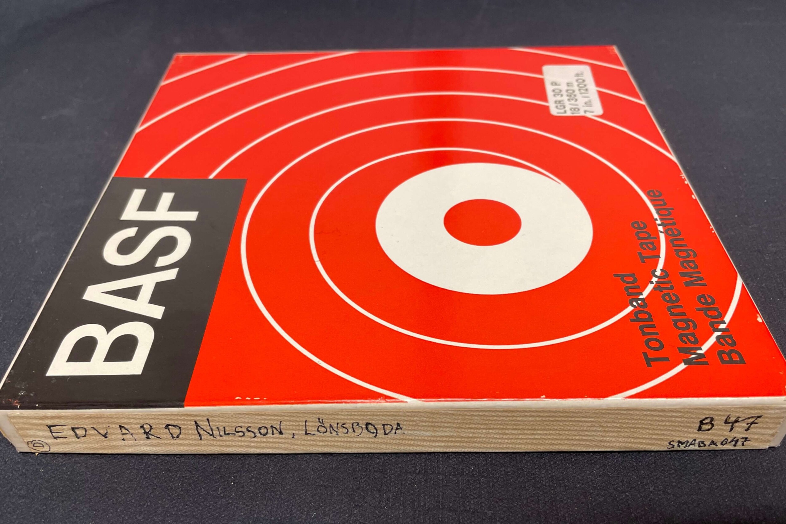 Bandkartong till rullbandsinspelningen med Edvard Nilsson.